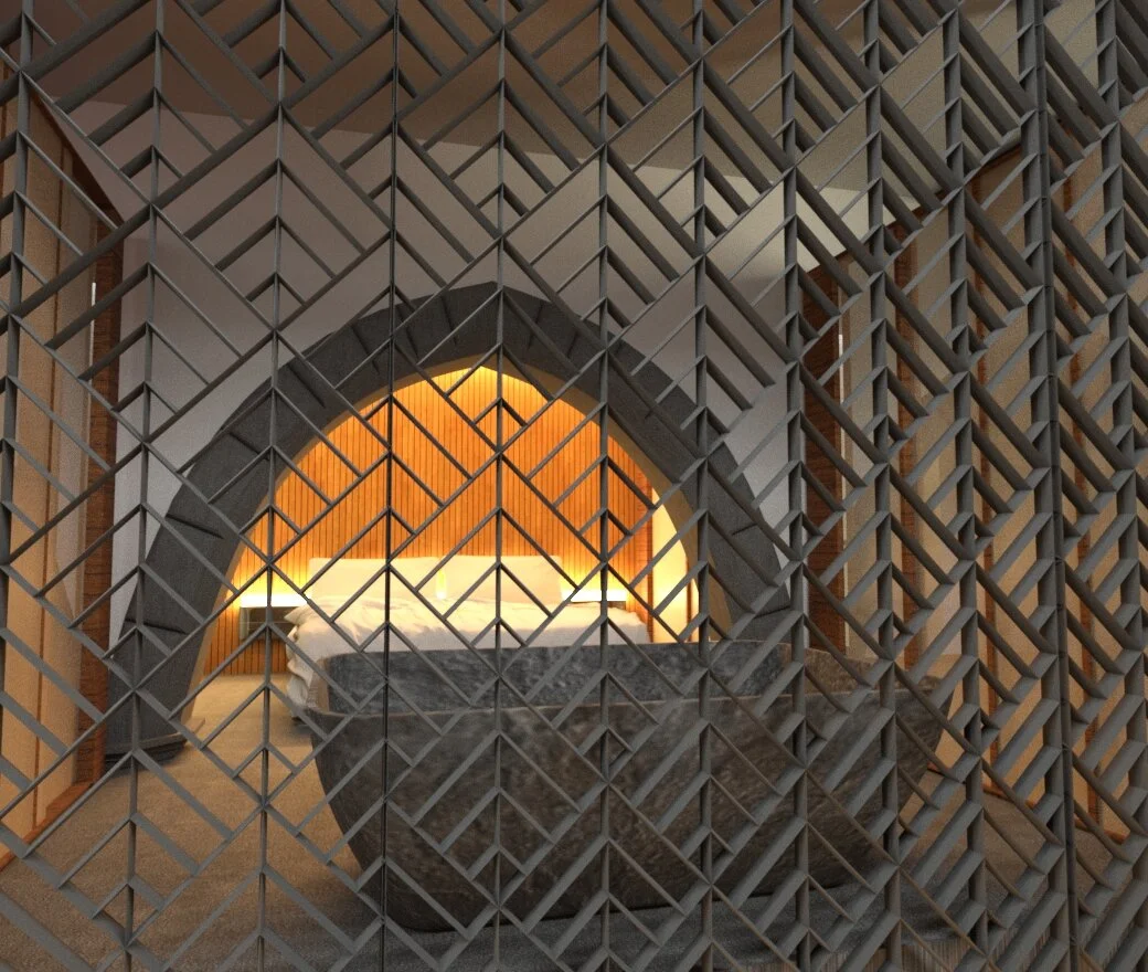 J’ai voulu créer un espace où l’on peut franchir une frontière, où l’on n’est plus dans la vie réelle mais dans un espace propice au développement des sens. C’est un espace dédié à des couples qui veulent (re)découvrir leur relation amoureuse et sensuelle. Cet hôtel vous emmène dans un univers ouvert aux fantasmes, afin que l’imaginaire de chacun se lâche.